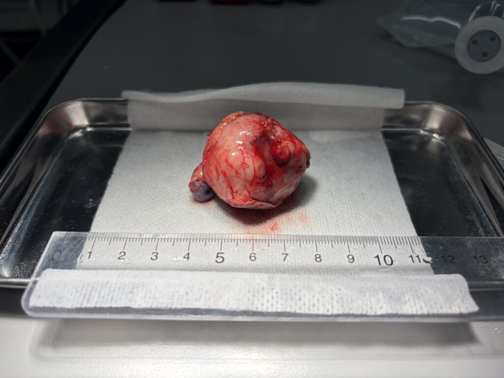 摘出直後の画像です。もともと65gあった体重は34gまで減りました。