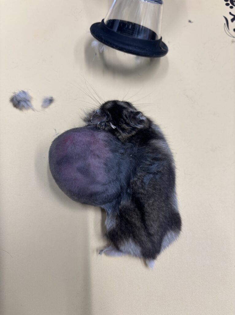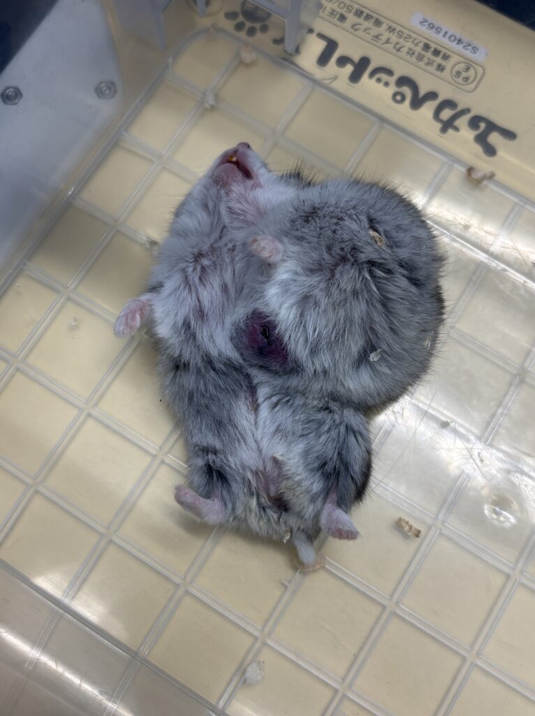 ハムスターは体が小さい分、相対的に腫瘍の成長が早くなります。なにか腫瘍らしき物を見つけた場合は早めに来院ください。