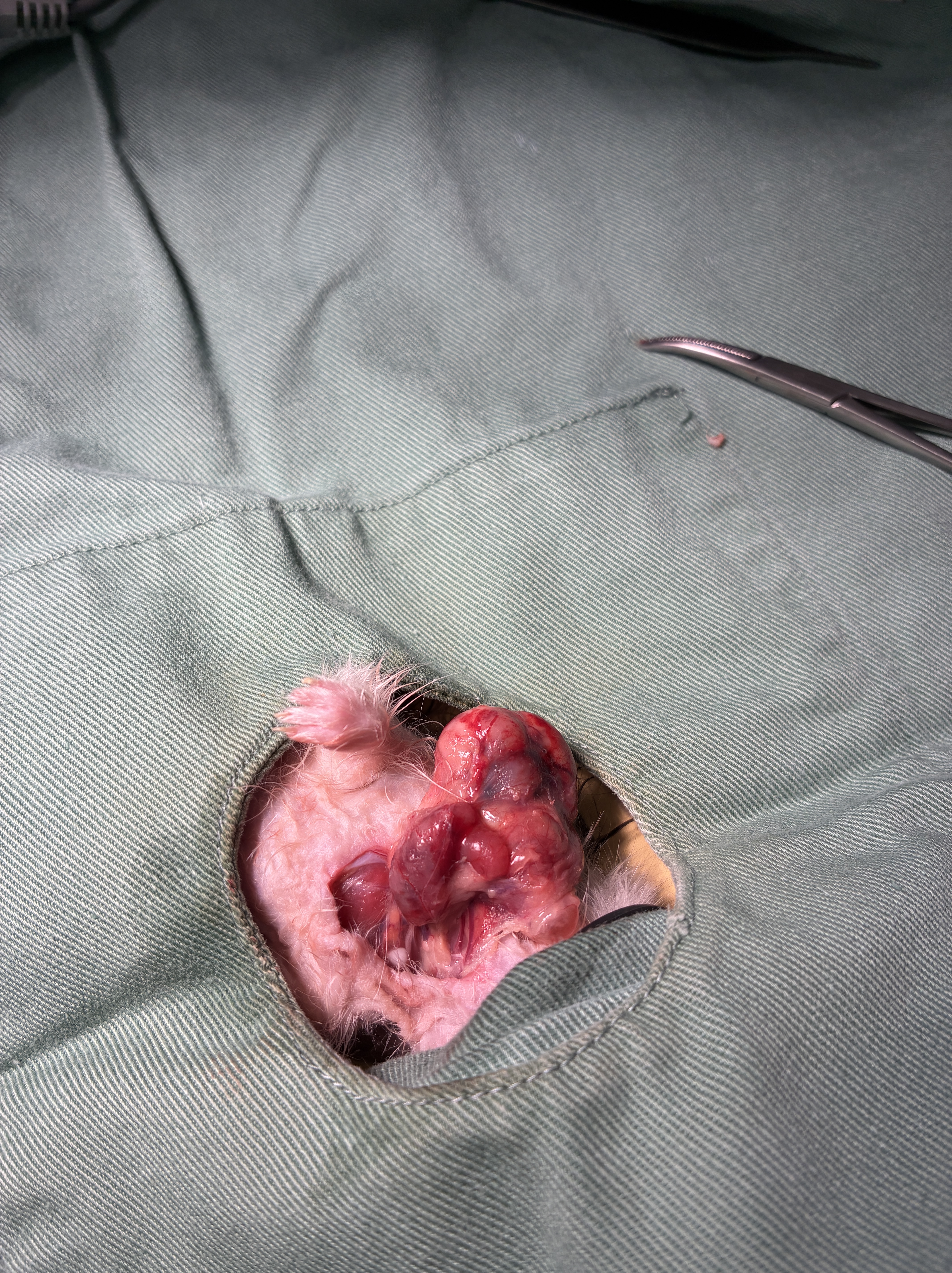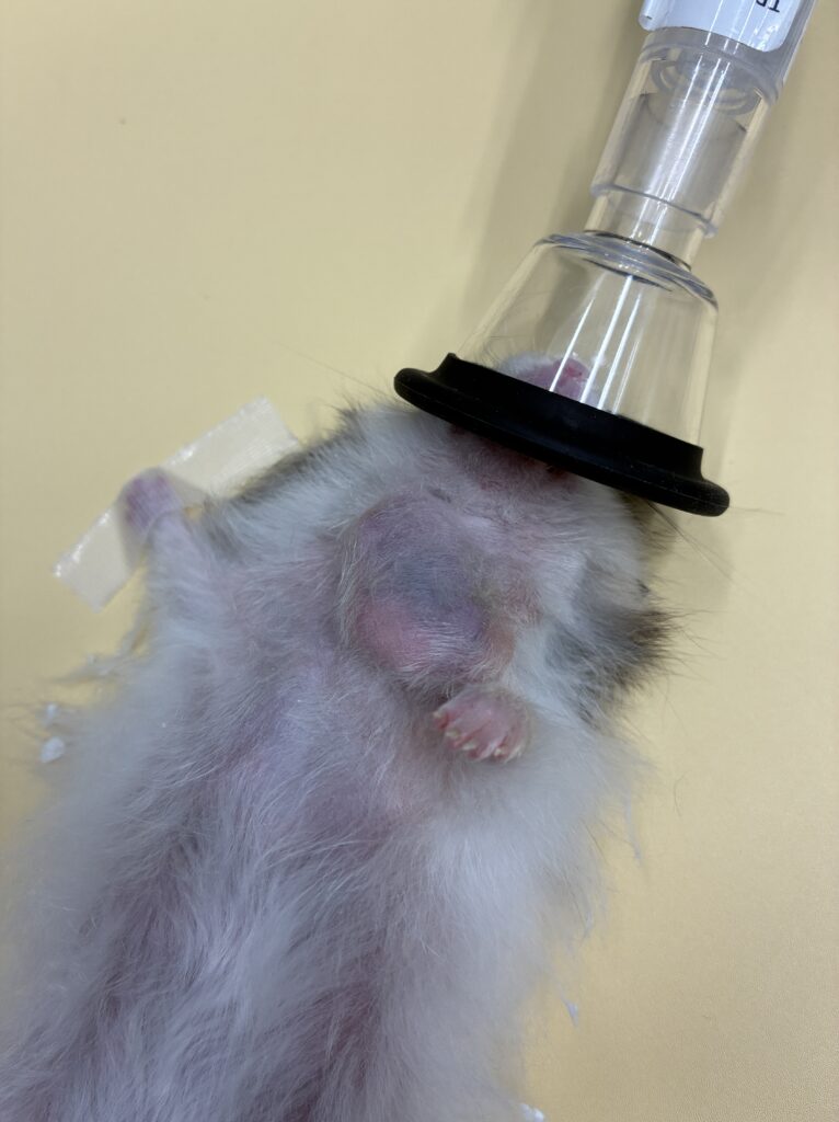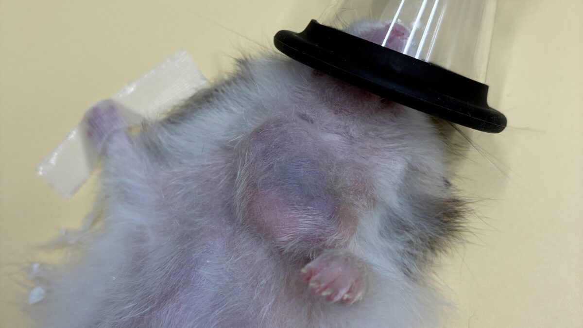 症例は約2歳のハムスターで胸から首にかけて腫瘍がみられました。