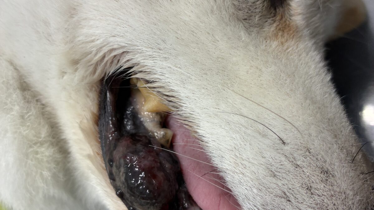 犬の「口腔内悪性黒色腫(こうくうないあくせいこくしょくしゅ)」は、口の中にできる悪性(がん性)の腫瘍の一つで、特に高齢の犬でよくみられます。