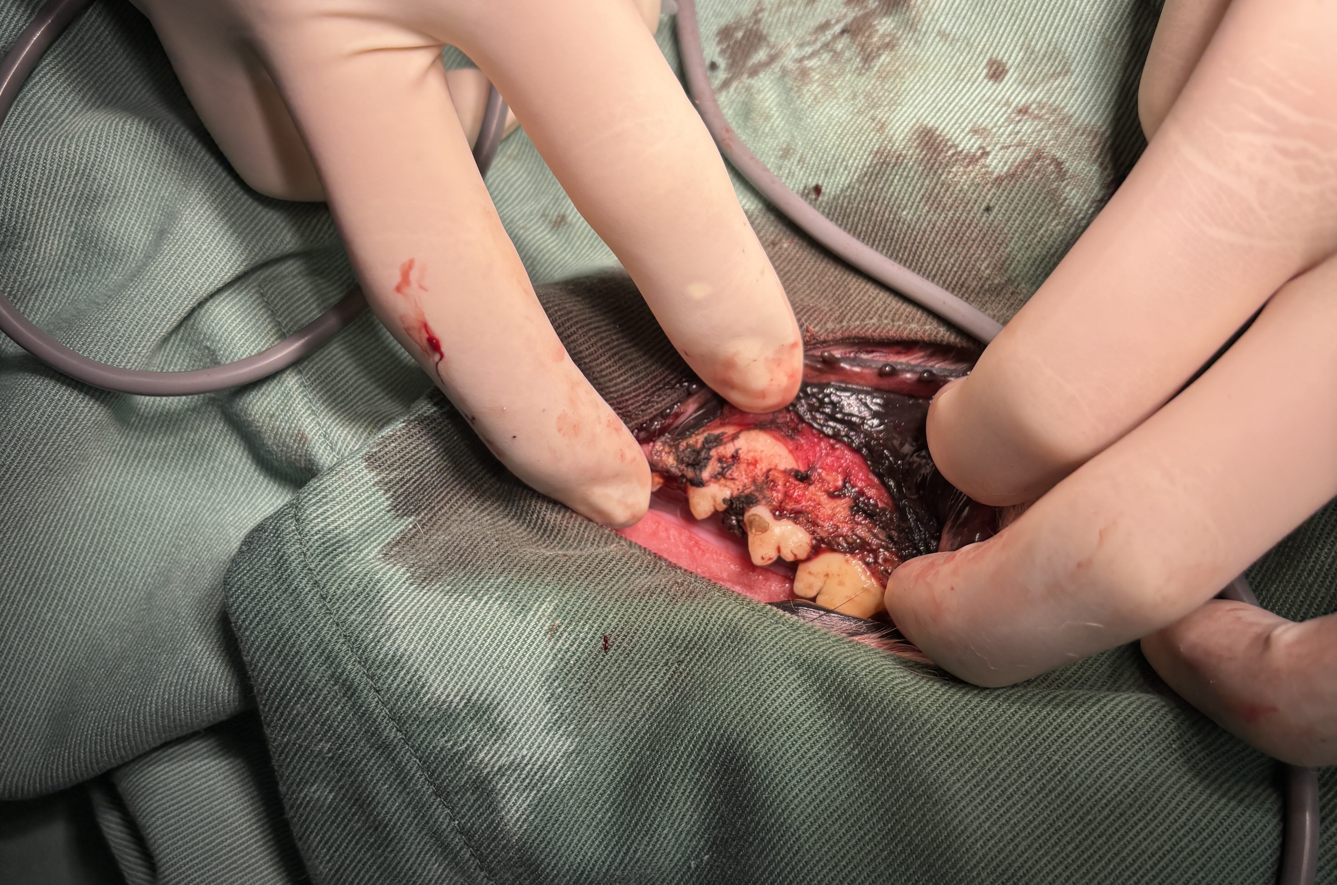 ・口臭、よだれ、出血、食欲低下、口を痛がる、片側でしか噛まないなどの症状がみられることがあります。