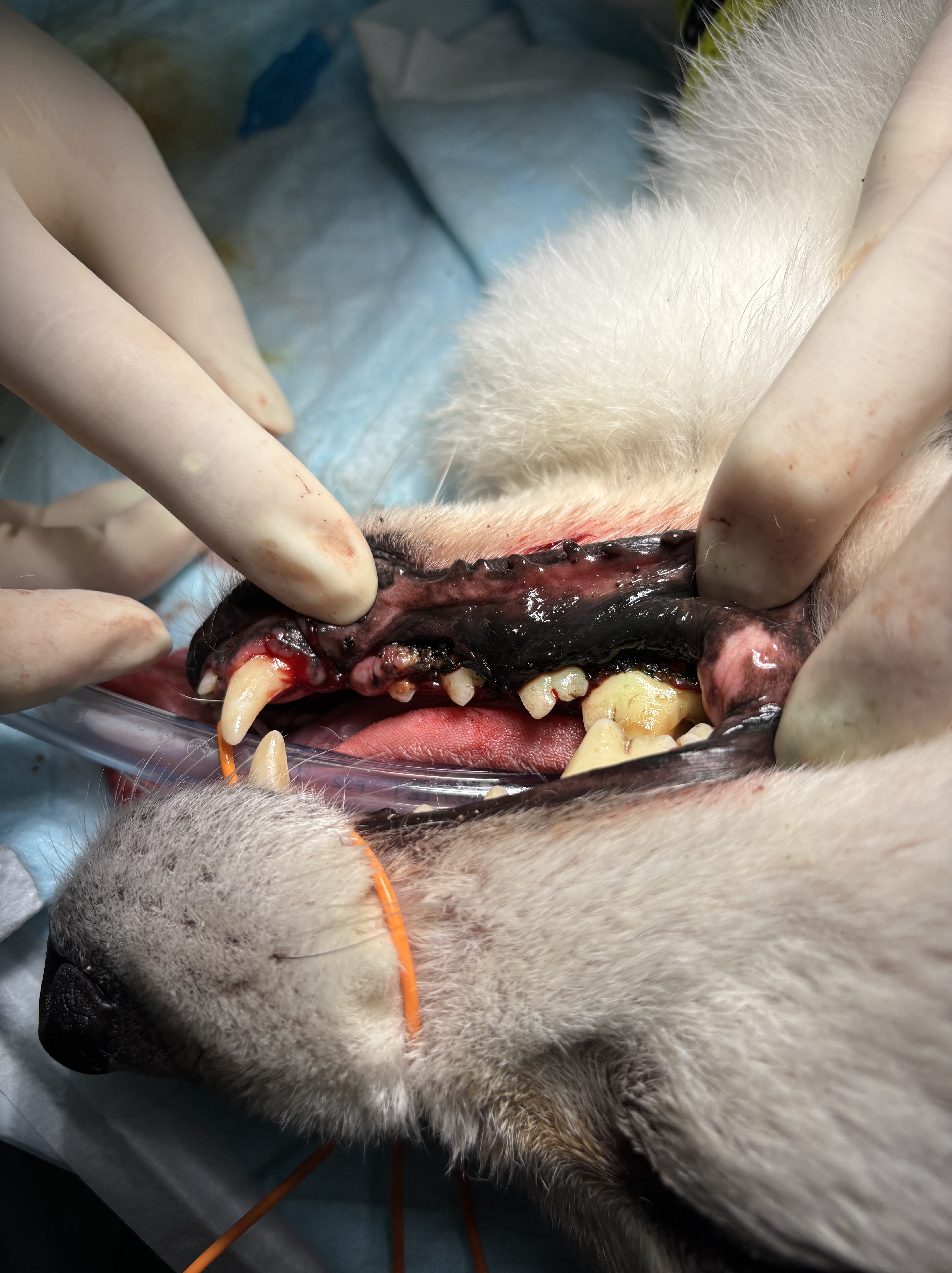 術前と、手術中最初に歯石取りをして消毒をしたところです。