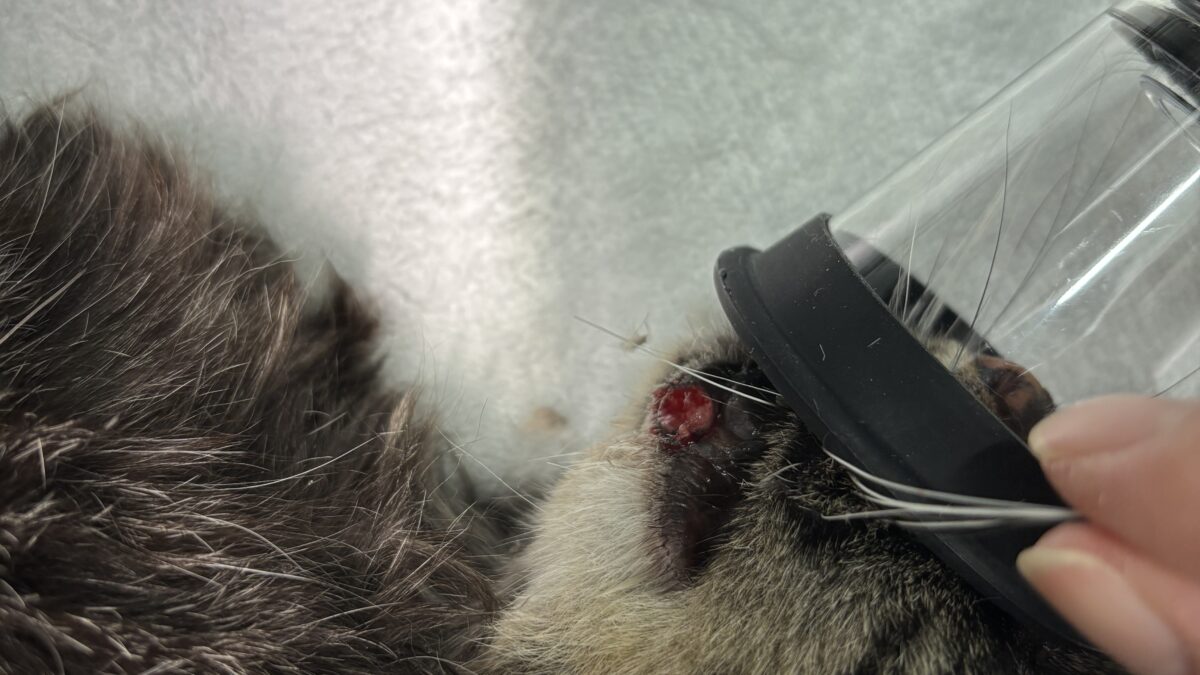結果はアポクリン腺癌で皮膚から出た腫瘍が大きくなって粘膜に乗り上げているとのことでした。