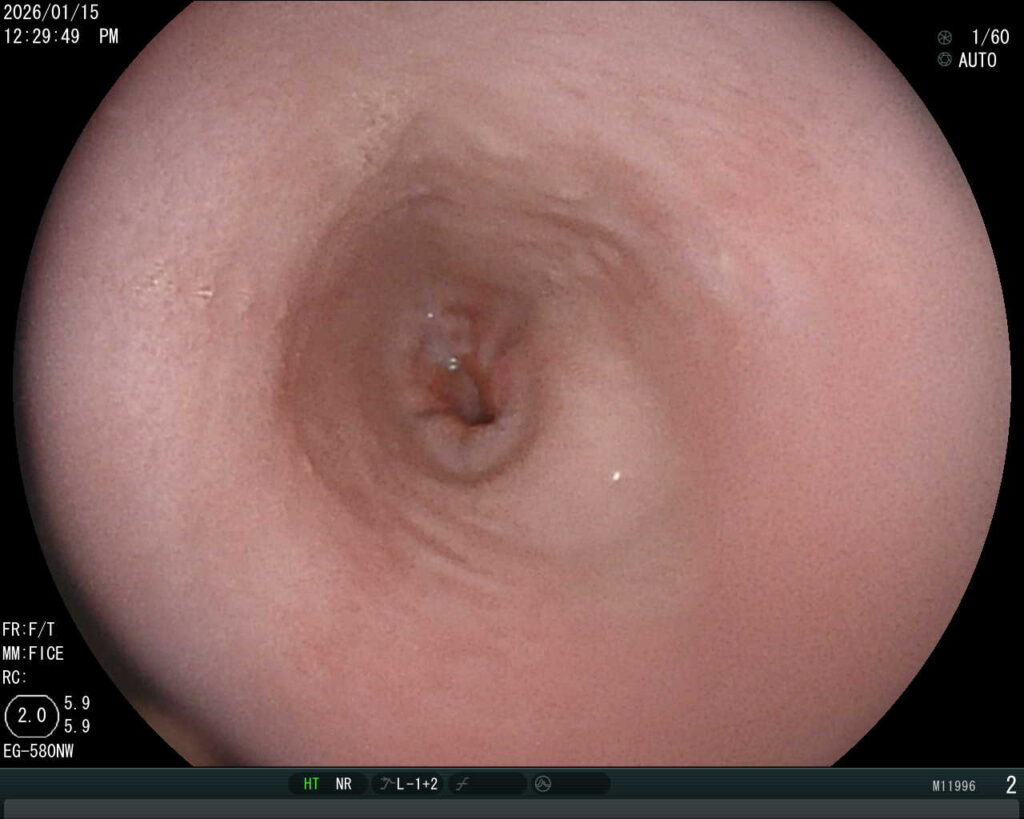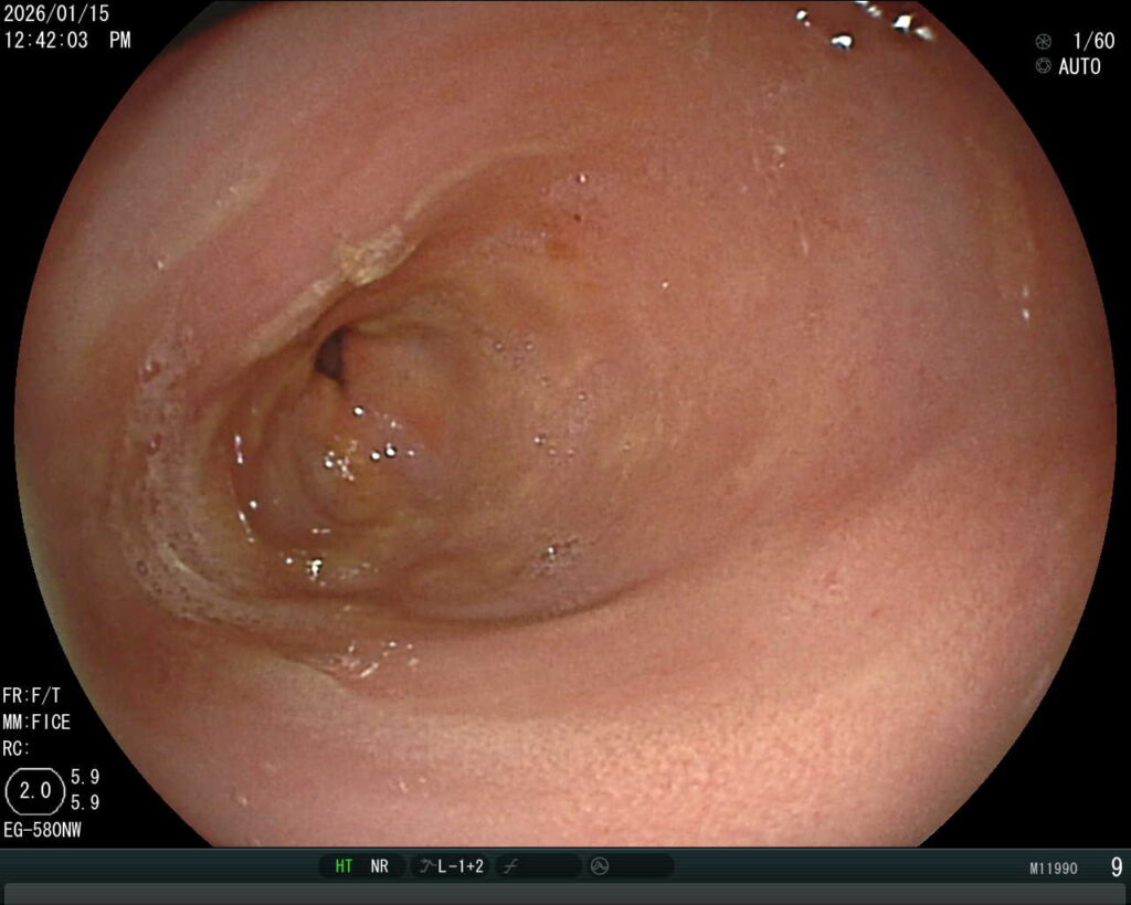画像は胃の入口の噴門と胃内にある髪ゴムです。