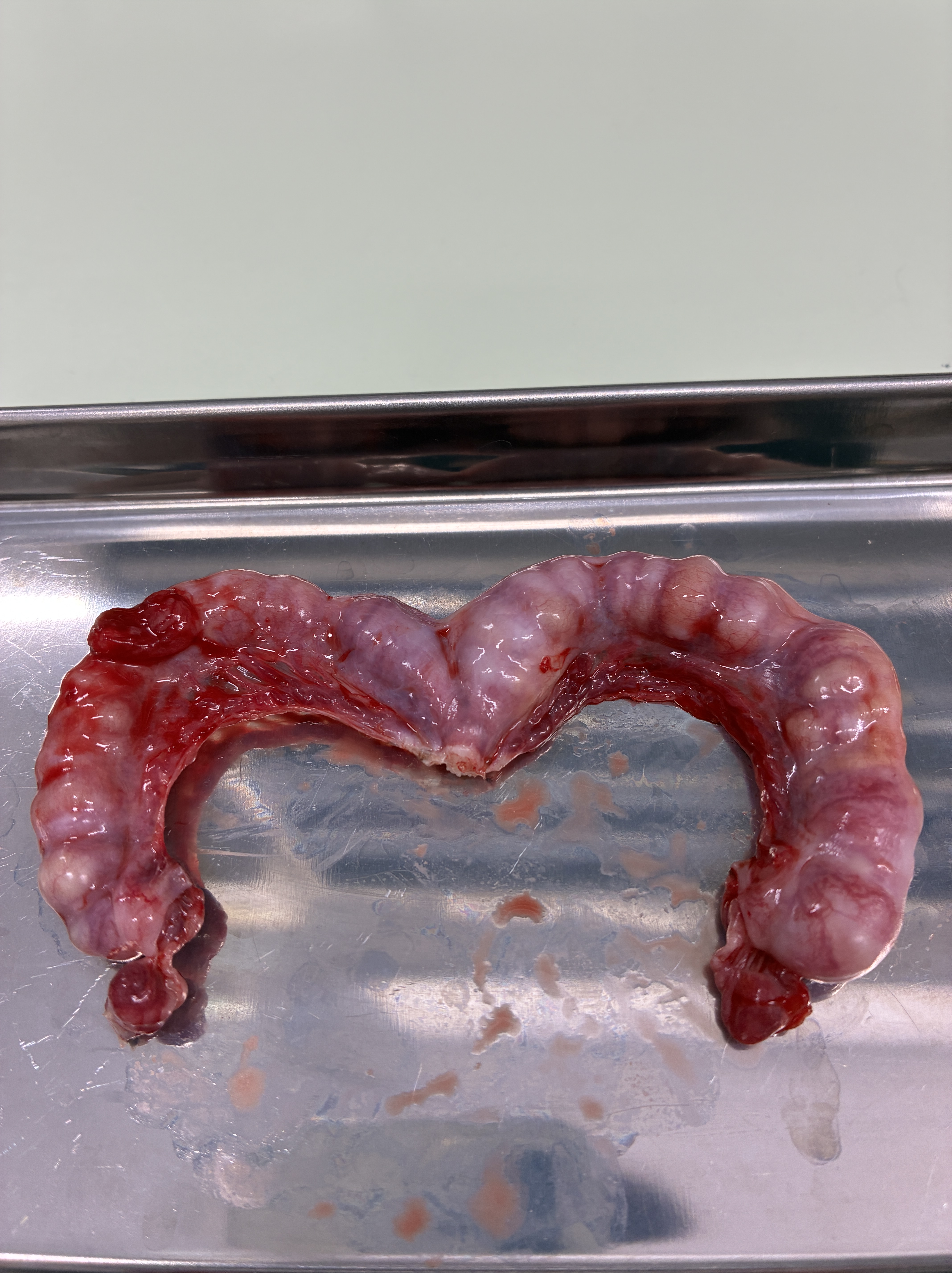 摘出後の子宮です。中には膿がたまっていて、細菌培養検査と薬剤感受性検査をしたところ細菌の繁殖が見られました。