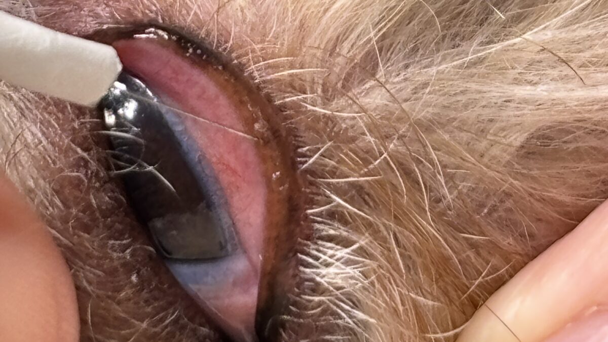 異所性睫毛は、まぶたの発育過程の異常が原因と考えられており、若い犬に見られることが多い病気です。